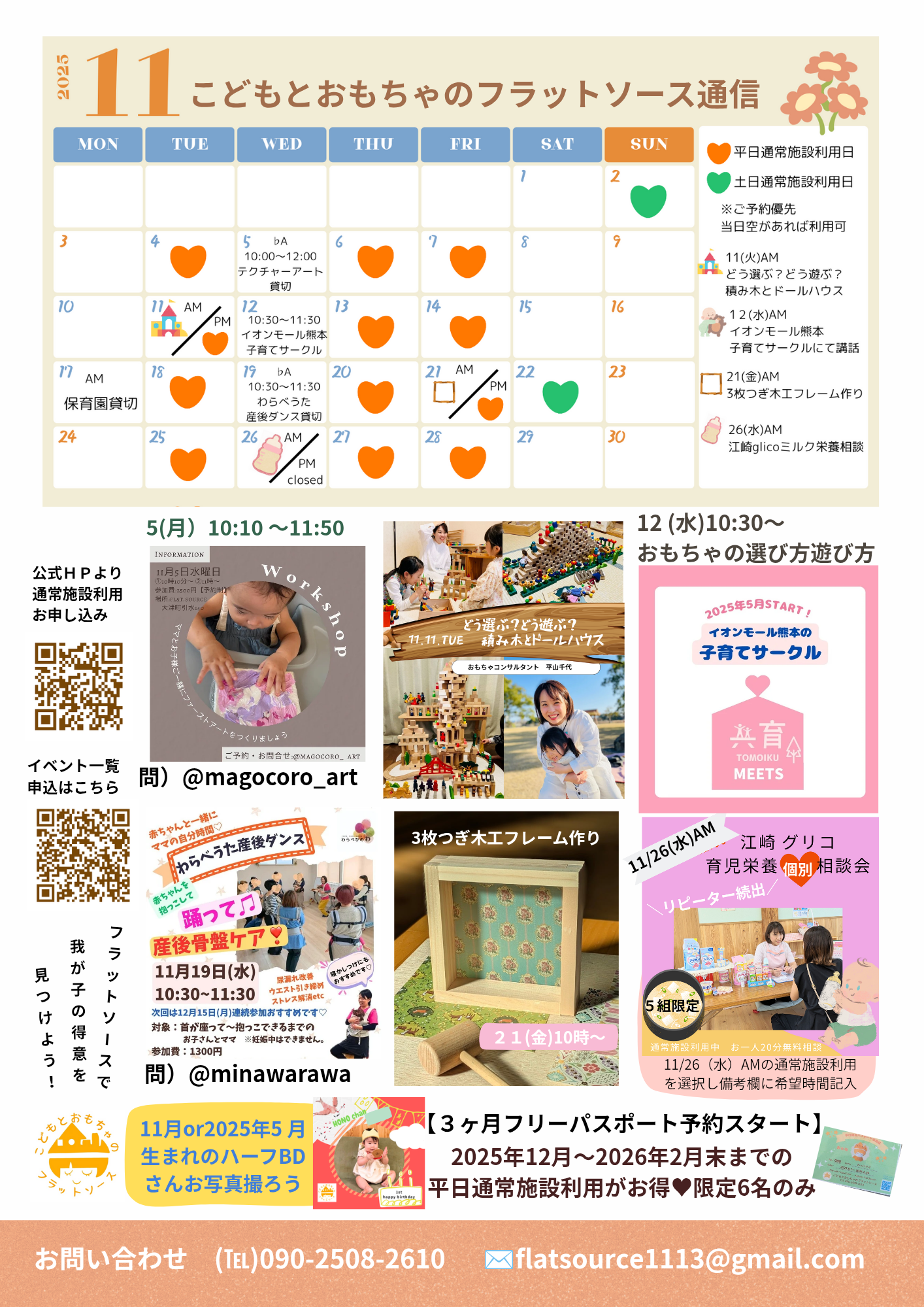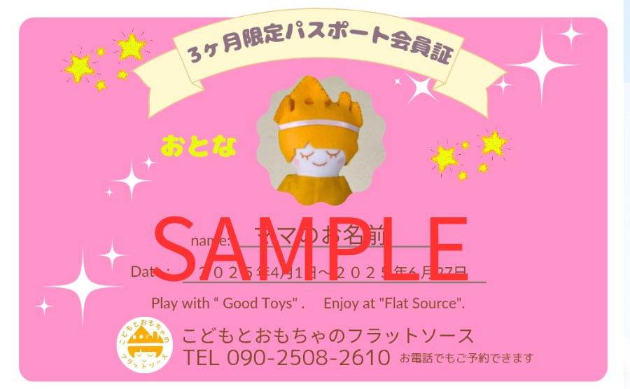 平日施設通常利用限定の3ヶ月パスポートを11月2日より、こどもとおもちゃのフラットソースにて販売スタートしています。