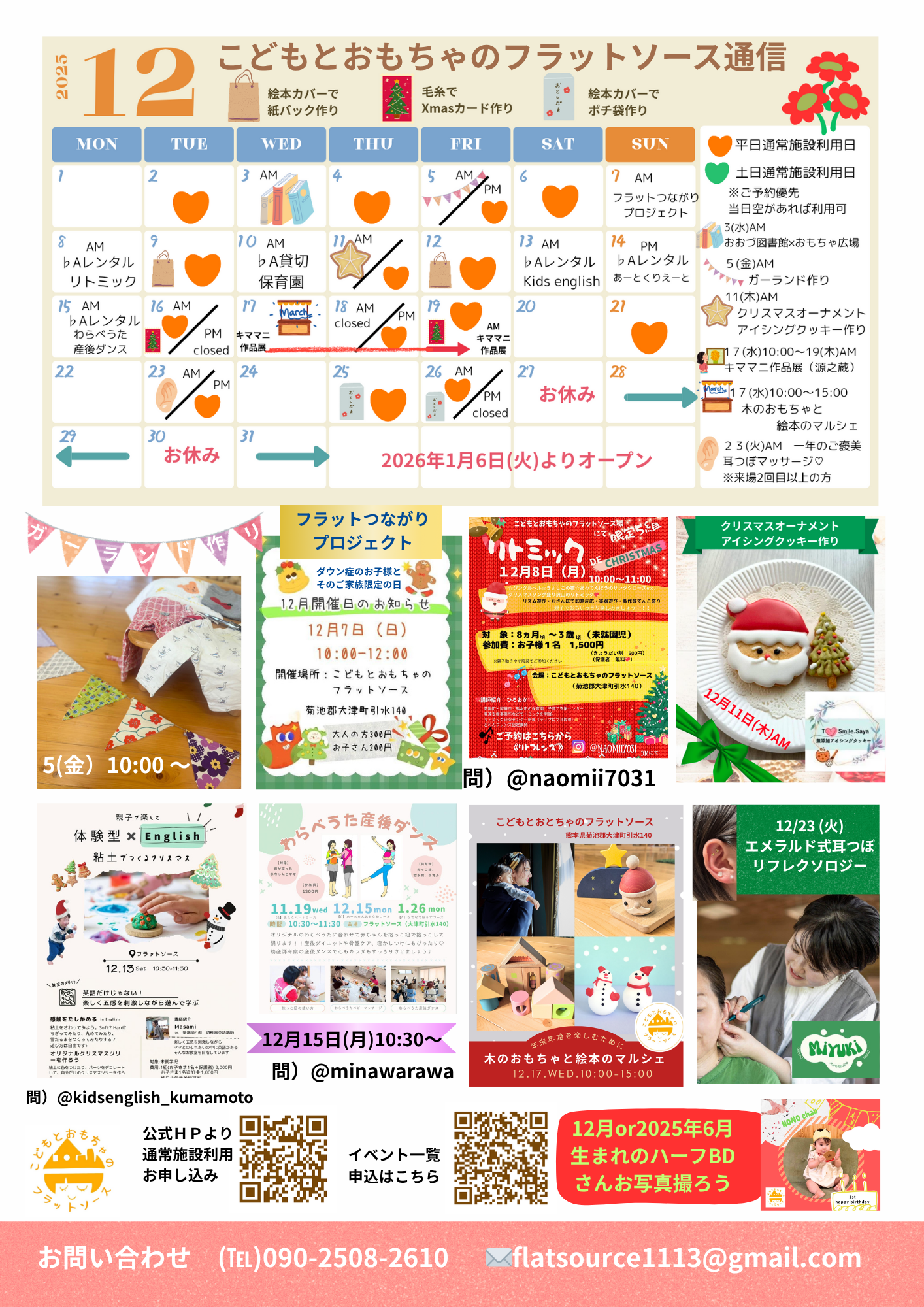 お問い合わせ、ご予約はメールにて