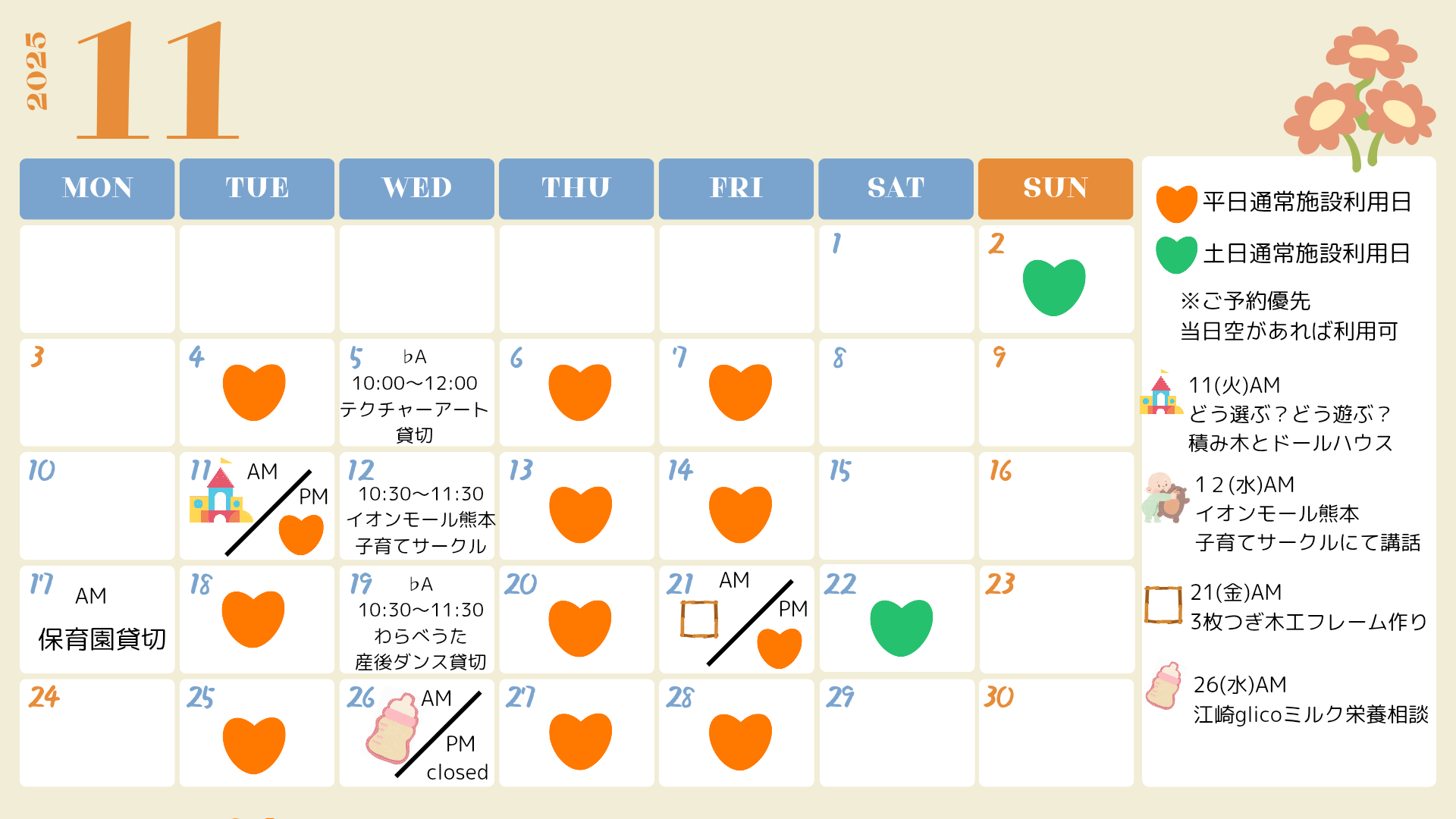 【 11月のオープン日 】